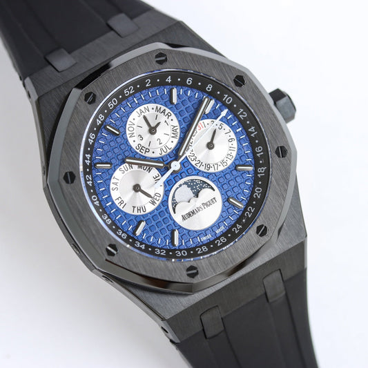 Blue Black - 904L Steel - Blue Leather -QUARTZ- 42mm