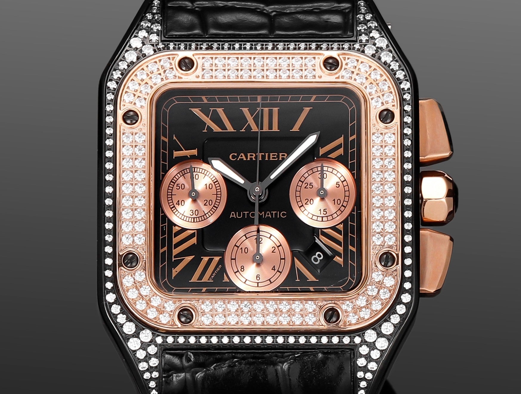 Chronograph -Rhinestone White 316L Steel - Black Leather - Automatic - 42mm